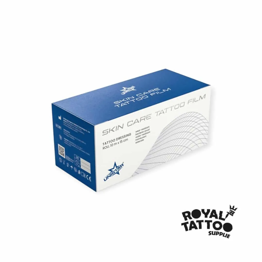 Trata-se de um curativo fino em forma de película adesiva, é frequentemente chamado de segunda pele. Este adesivo serve para ser aplicado sobre uma tatuagem recente. É muito confortável de usar e é praticamente indetectável. Graças à sua elasticidade pode ser aplicado com segurança em qualquer parte do corpo. A Sua grande vantagem é que pode permanecer na pele por vários dias!